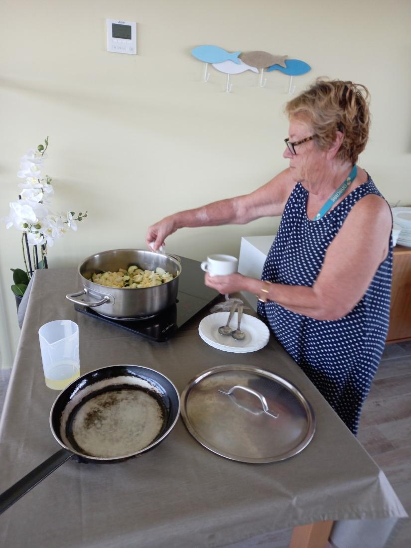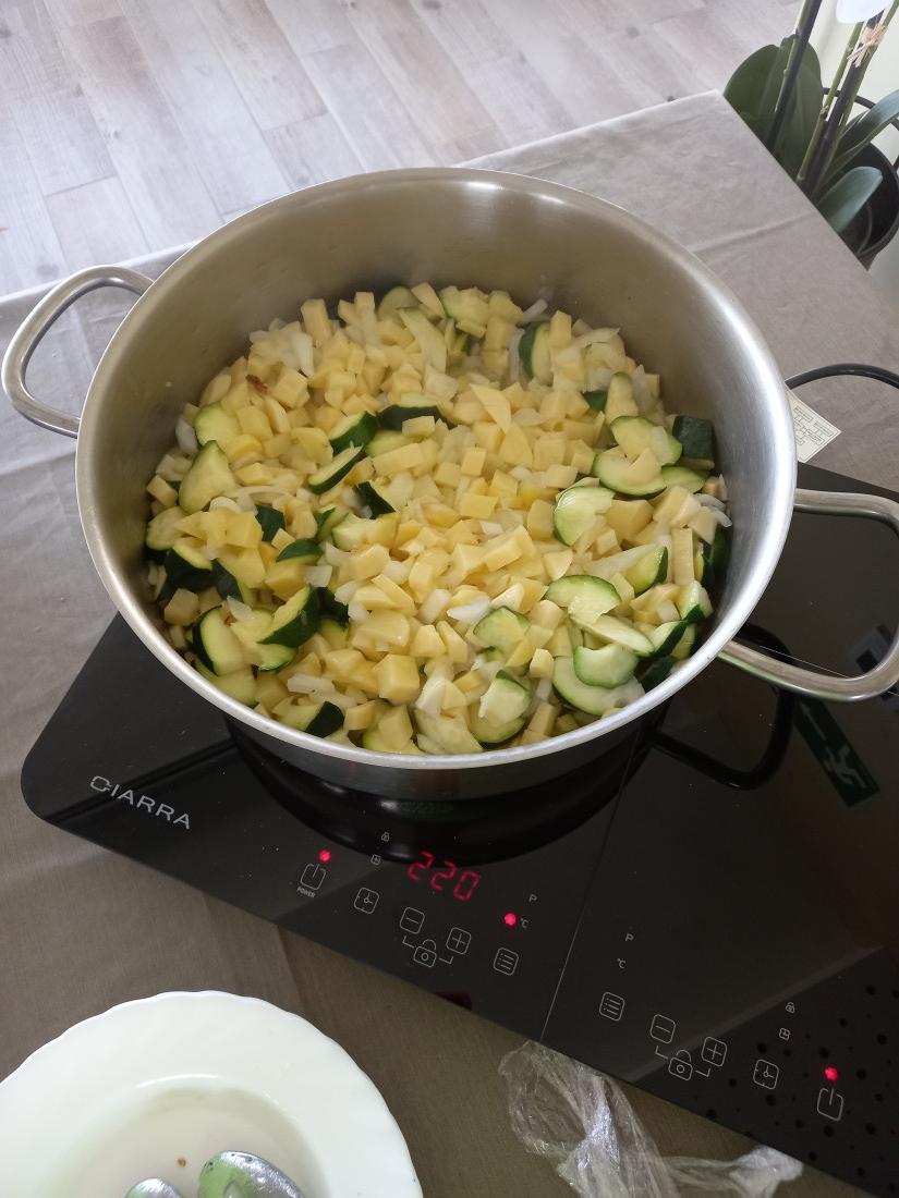 Ajudem a cuina a fer la truita de patata en ceba i carabassó per a nosaltres! L'oloreta del menjador ho diu tot!!!