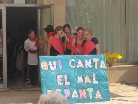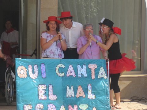 A la tarde va començar l'espectacle amb l'entrega de premis als residents més veterans. Desprès els treballadors dels centre ens vam oferir diferents correografies (waka waka i kapoeira), a continuació va tenir lloc el magnific Karoke “Qui canta el mal espanta” i per finalitzar el ball del farolet on les families i alguns residents van participar.