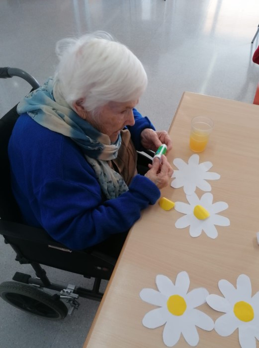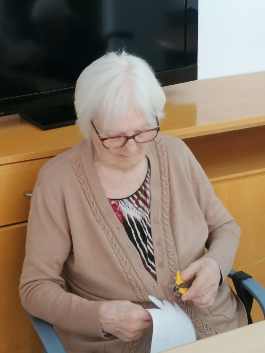 En la unitat de convivència Sagrada Família, treballant per a la decoració de la festa de Carnestoltes!