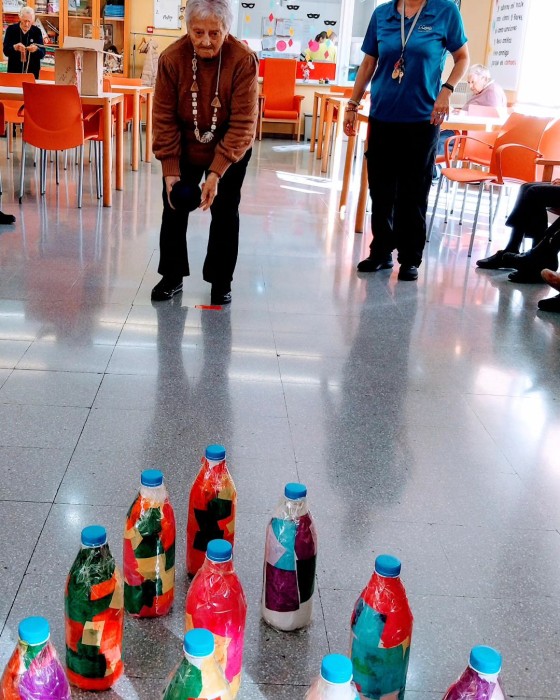 Esta mañana hemos disfrutado echando unas partidas a los bolos. Hemos trabajado movilidad, equilibrio y coordinación a través de este juego tan divertido.
