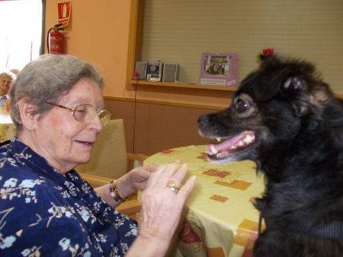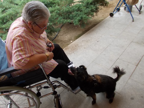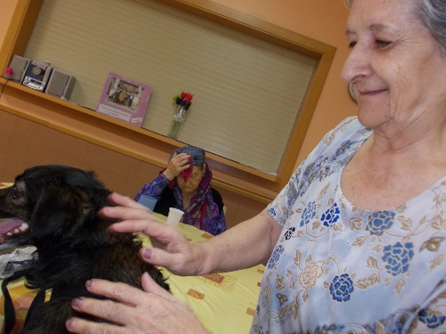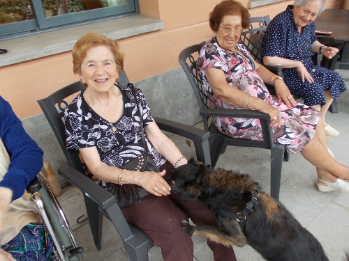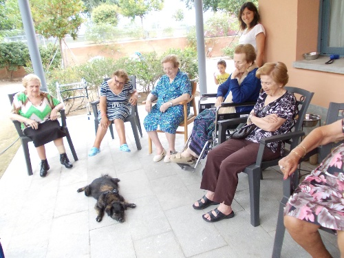 Després d'uns mesos de convalescència, la Nuka ha tornat a l'Onada Riudoms. Tots els residents han estat molt contents de veure-la!! Els residents han recordats els gossos que han tingut a casa, els seu nom, com eren...Altres residents han fet treballar a la Nuka de valent, fent-li fer mil i una piruetes, burdar, ballar...Aquesta gossa és tota una estrella!!