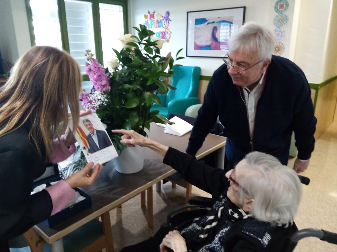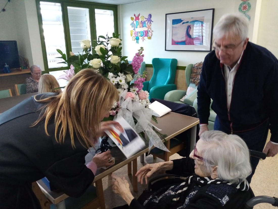 Per acabar la Florinda Badia, regidora de Gent Gran de l'Ajuntament de Badalona, ha fet entrega de la medalla centenària a l'Eulàlia, en companyia del seu fill. Moltes gràcies!