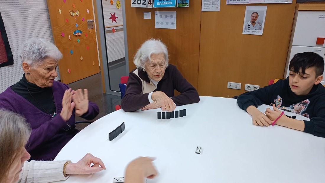 L'últim dijous de mes, els nens i nenes del col·legi, ens venen a visitar per poder estar amb els avis i jugar amb ells a diferents jocs de taula.
