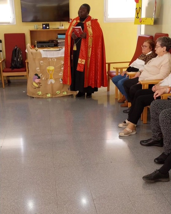 Hoy el padre Egide ha celebrado una misa muy especial y emotiva para bendecir las Palmas para el Domingo de Ramos.