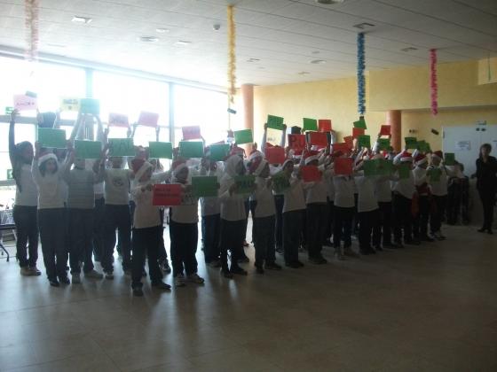 Els nens ens van cantar diverses cansons i fins i tot en angles, va ser molt bonic ja que eren uns 100 alumnes en total.