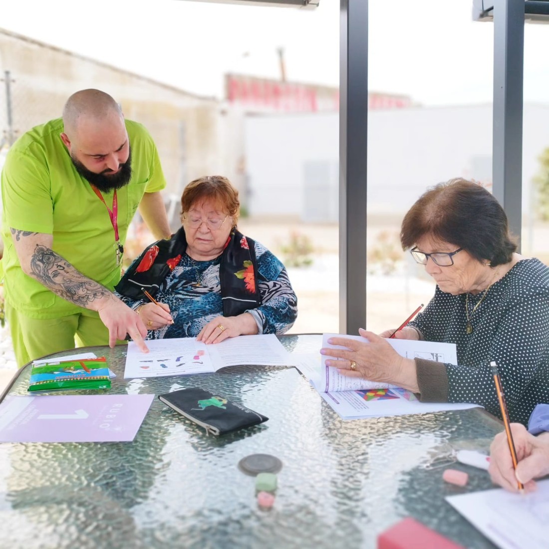 Continuem amb el projecte per a la potenciació de l'estimulació cognitiva i canviem d'ubicació. Aprofitant els espais a l'aire lliure del nostre centre, llum natural i tranquil•litat.