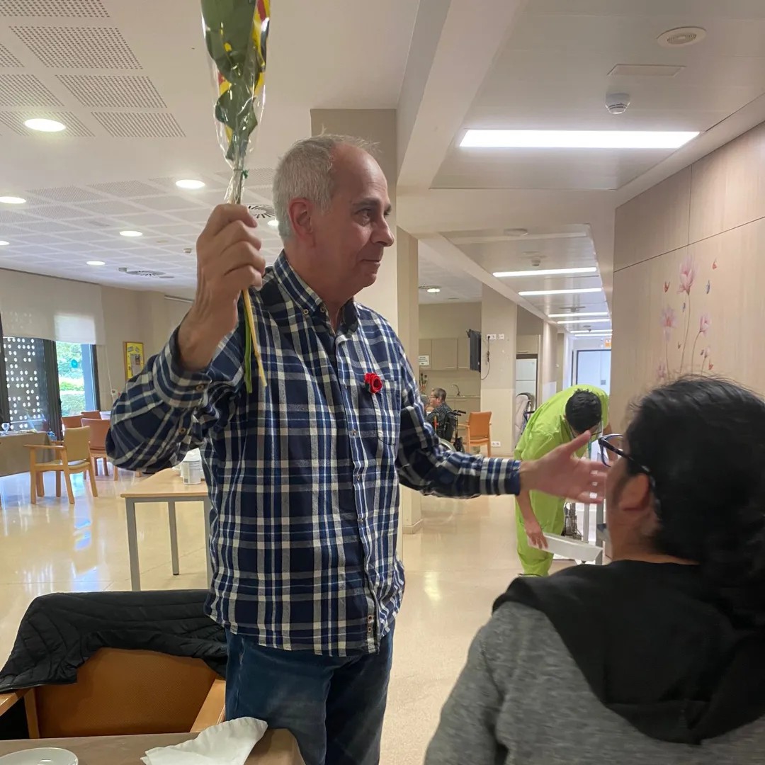 Els usuaris del taller ocupacional d'Ampans, ens han vingut a portar roses.