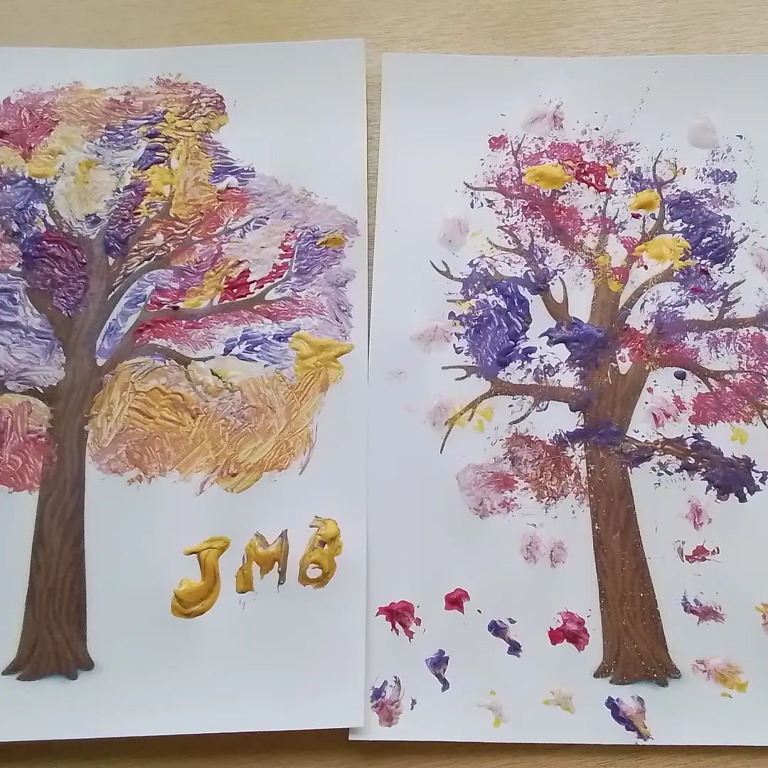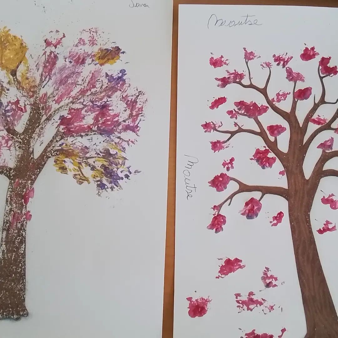 Manualitats. Avuí pintem arbres de primavera.