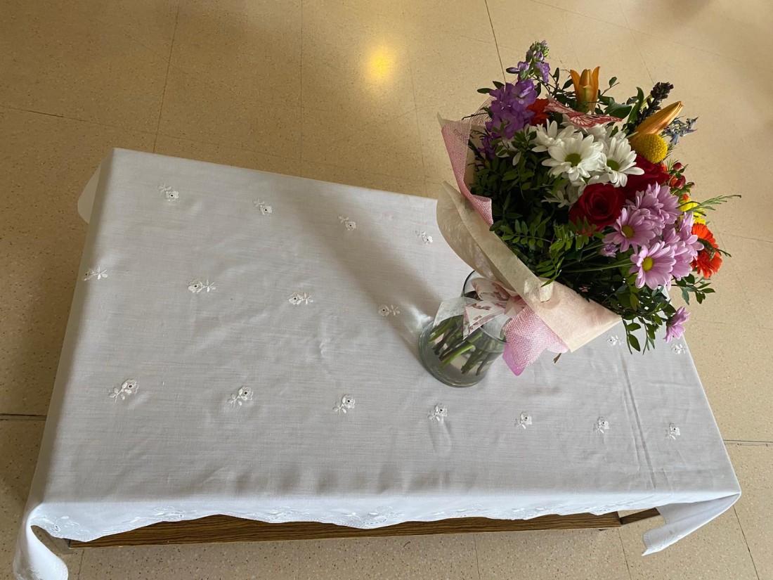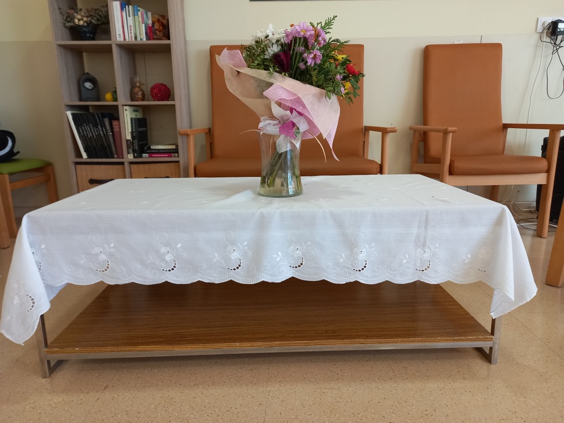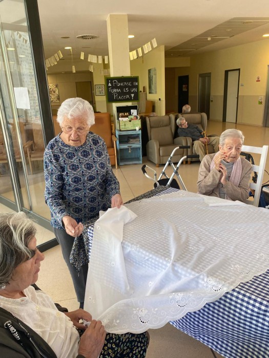 Poc a poc anem decorant el centre amb elements reminiscents aprofitant el taller de costura, l'Ana Gomez ha creat unes tovalles com les que hi havia a moltes sales d'estar dels anys seixanta.