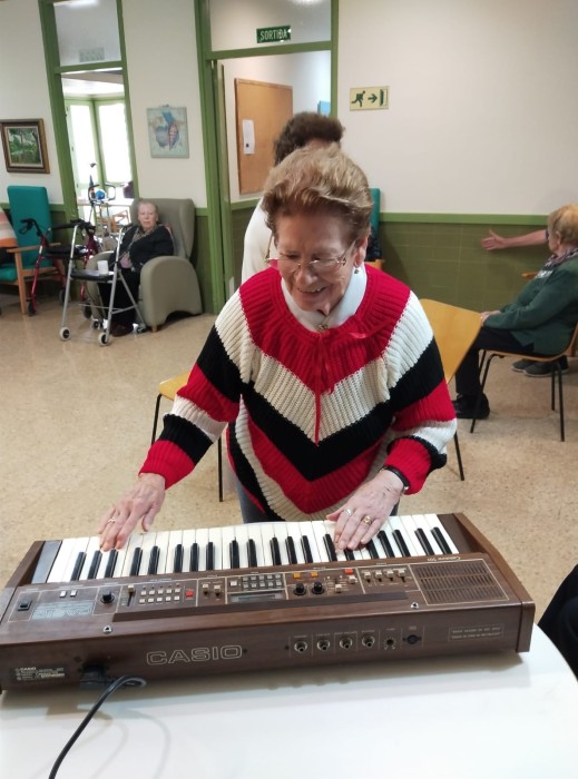Esta mañana en el centro de dia todos han disfrutado del taller "la música ens dona vida" Hemos incorporado a los instrumentos musicales un órgano que ha donado la familia de Dolores. Cómo han disfrutado tocando las teclas con los diferentes sonidos y ritmos que tiene. Muchas grácias!!!