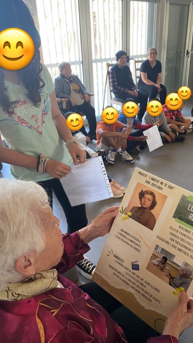 El dimarts d'aquesta setmana vam acomiadar les activitats intergeneracionals, amb una activitat preparada pels alumnes de l'escola Mª Garcia Cabanes, dedicada a les dones del centre. Van preparar unes cartolines amb la vida de cada una, i van fer l'explicació de la seva història de vida. També van participar les famílies. Després es va realitzar un berenar. Un homenatge molt emotiu!!