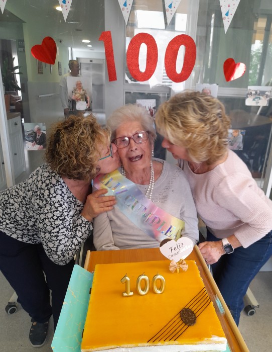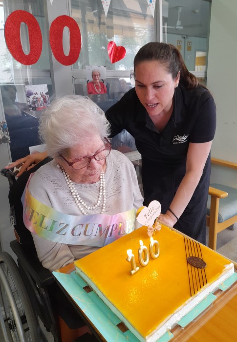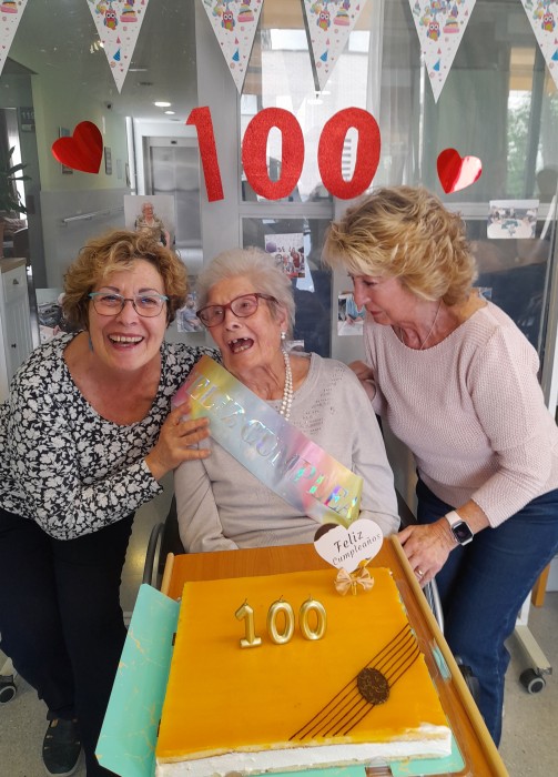 Així vam celebrar ahir el centenari de la Sra Jovita, juntament amb els companys i les companyies de la unitat de convivència Montjuïc, i amb els treballadors.