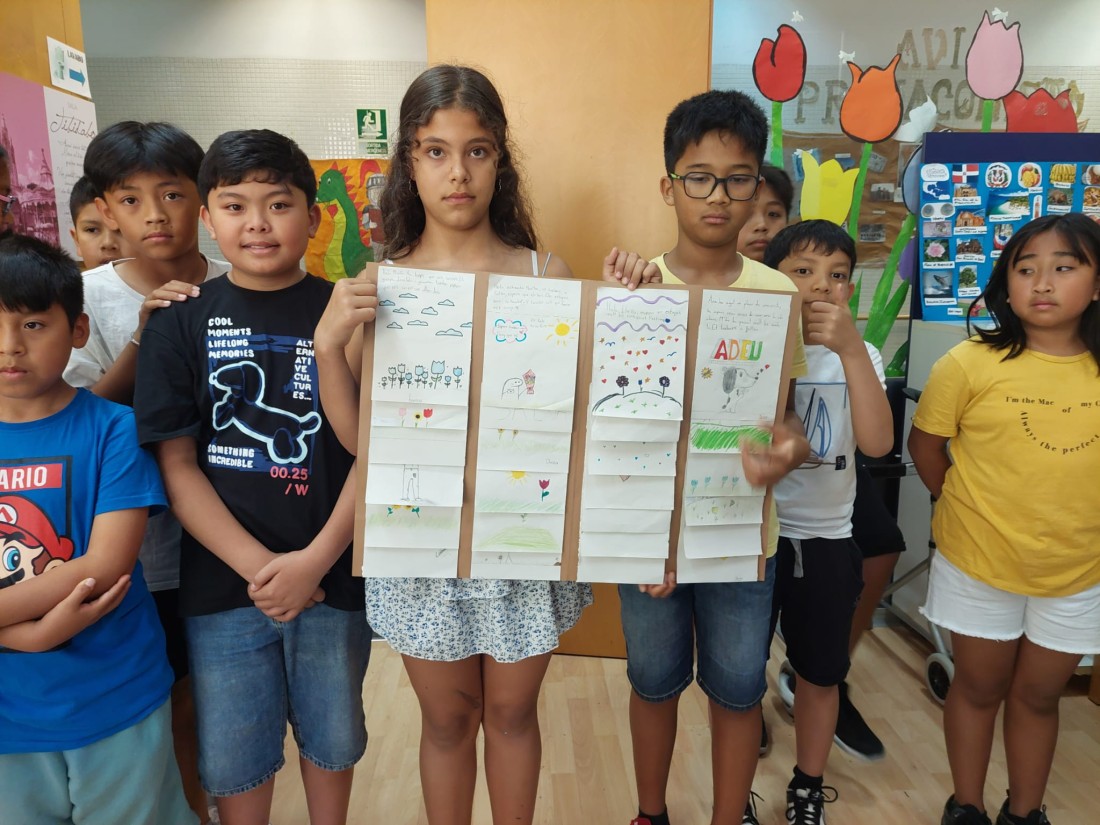 Avui els nens de l'escola Aldana, amb els que hem fet activitats durant tot l'any, han vingut a acomiadar-se fins el proper curs.Que vagi bé l'estiu!!!