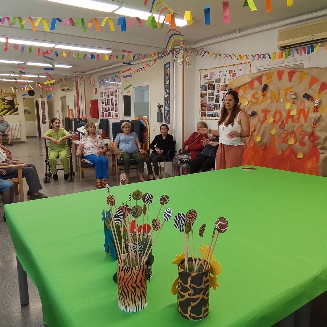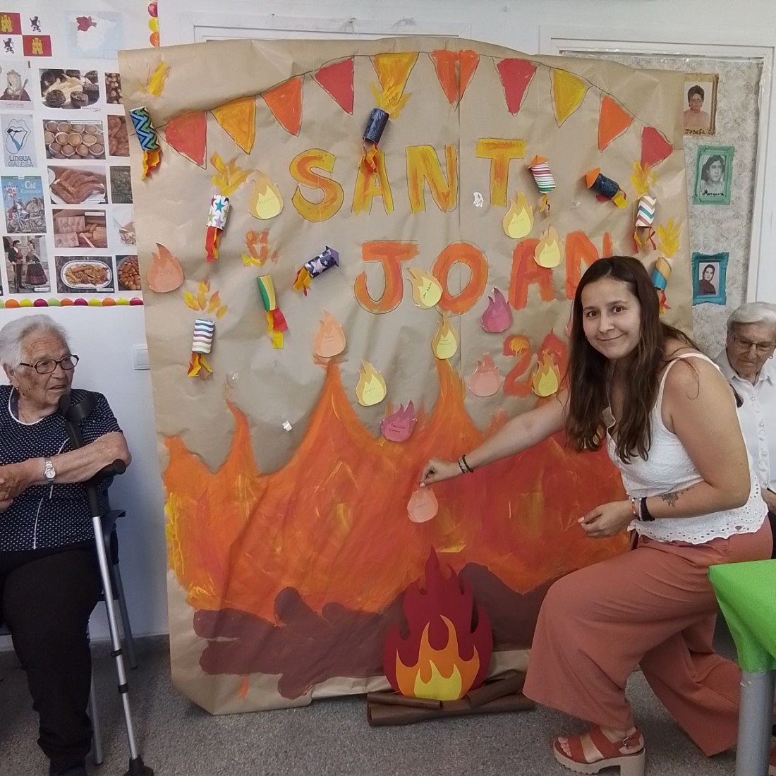 Hoy celebramos San Juan, compartimos pica pica, se quemó todo lo malo que les ha pasado en la hoguera y leímos los deseos positivos de cada usuario. Para terminar disfrutaron de postre una rica coca.