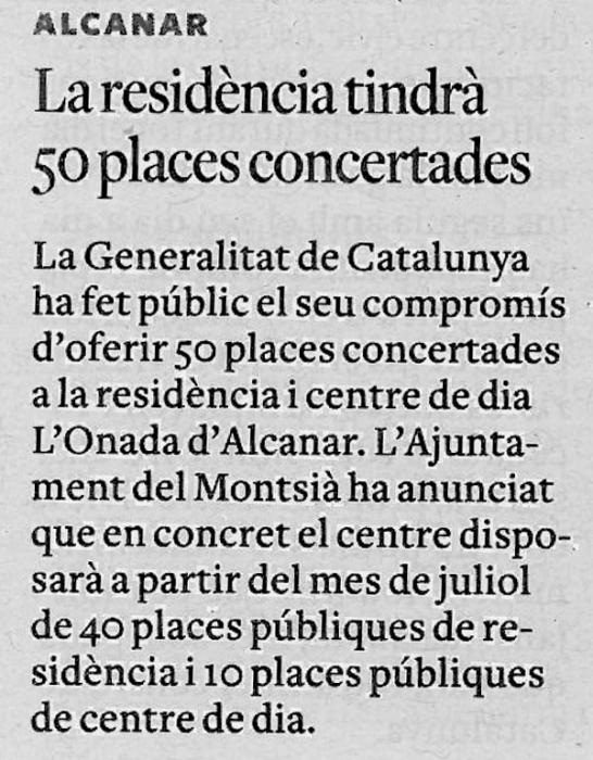 La residència d'Alcanar tindrà 50 places concertades