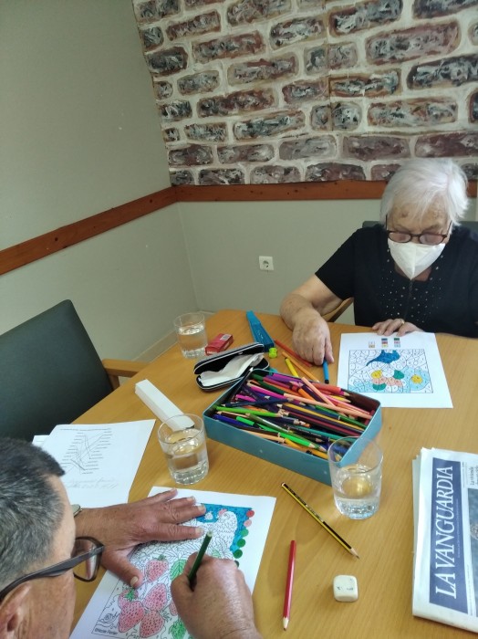 Avui pintem quadres seguint els numeros relacionats amb els color. Amb això treballem la concentració, memòria, motricitat fina...i el resultat els encanta.