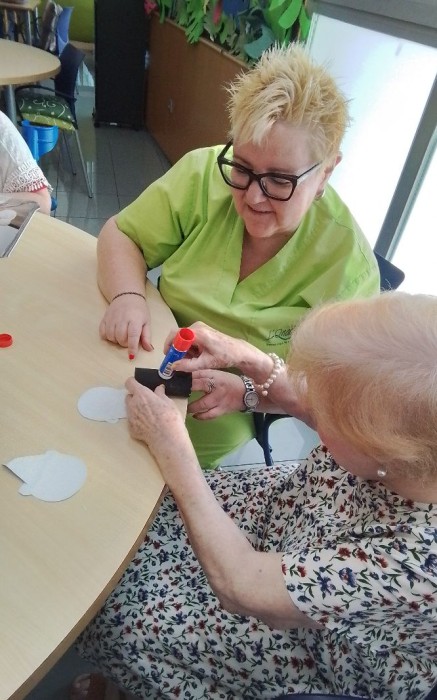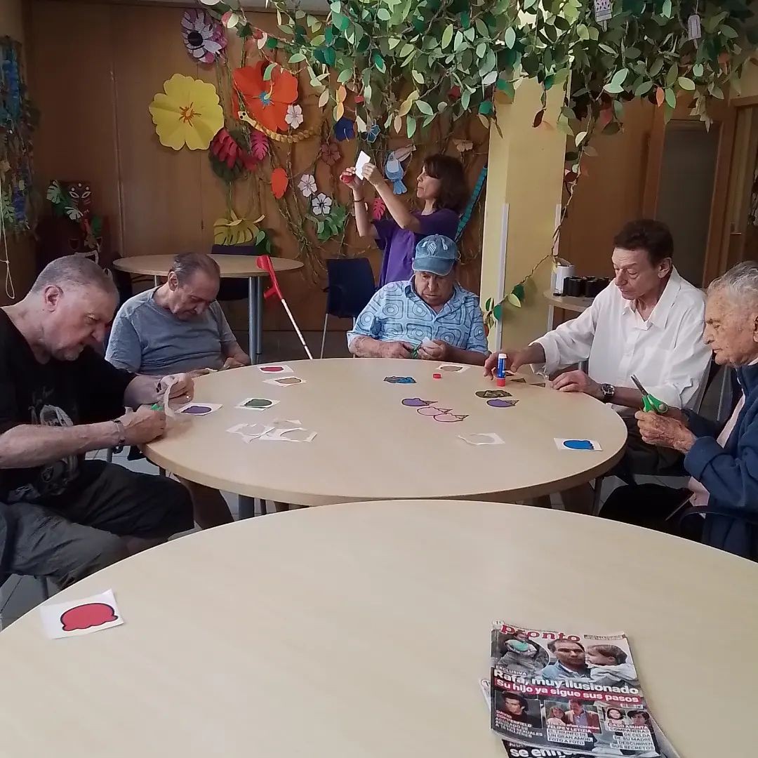 Treballem l'atenció i la psicomotricitat fina, alhora que preparem decoracions per al Centre de Dia.