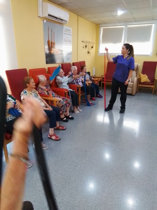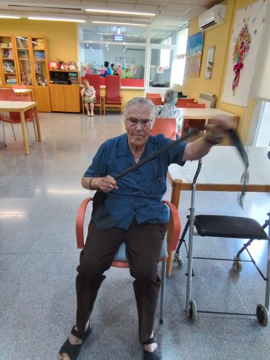 Introducimos un nuevo material a nuestra gimnasia. Theraband nos ayuda a fortalecer nuestras extremidades y movilidad!