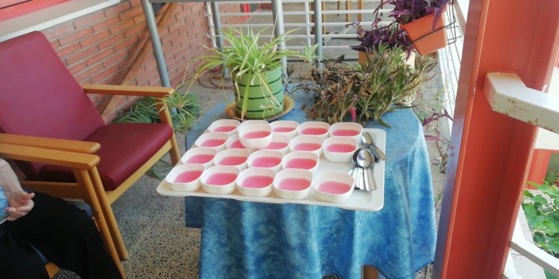 Avui hem menjat gelatina fresca a l'exterior per canviar una mica la rutina i estar una estona a fora a les hores de menys calor mentre mengem i escoltem música de fons! :)
