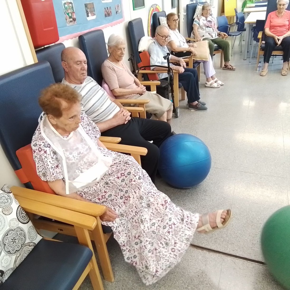 Jugando con la pelota para mejorar la flexibilidad.