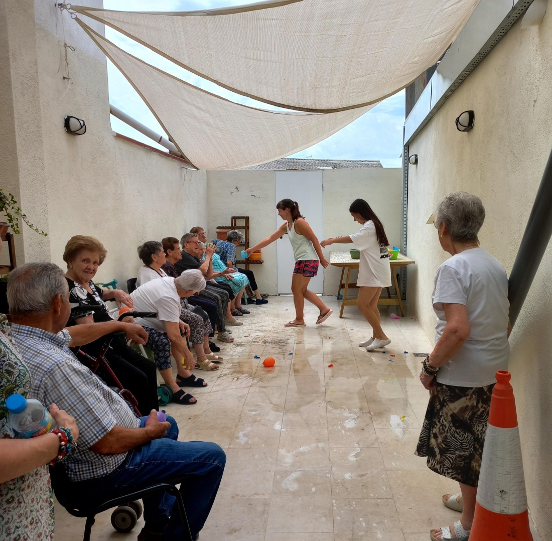 Aquest matí hem estat divertits amb els globos d'aigua. Hem treballat la punteria, entre rialla i rialla.
