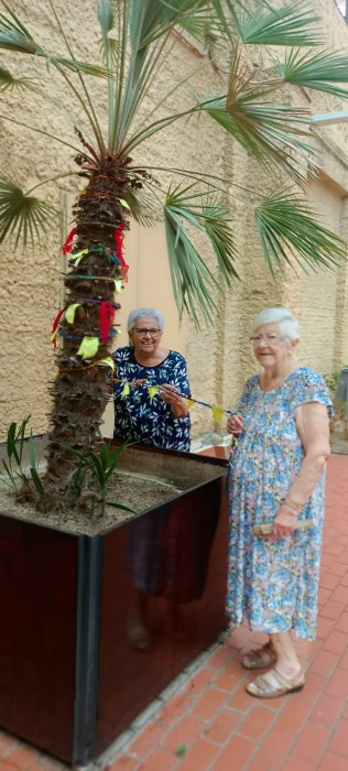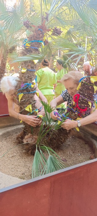 L'altre dia vem està engalant els arbres del jardí amb la decoració feta pels usuaris. Ara tenim un jardí que encara és més bonic!