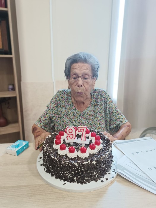 Celebrem l'aniversari de Teresa, li cantem i xarrem sobre els anys i aniversaris. Per molts més i amb molta salut!!!