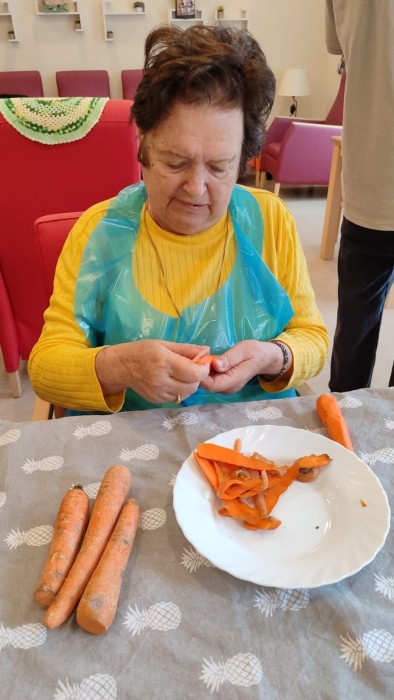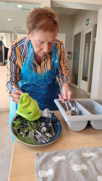 Hoy hemos realizado la preparación de un pastel mientras otros secan los cubiertos y otros la ensalada para comer