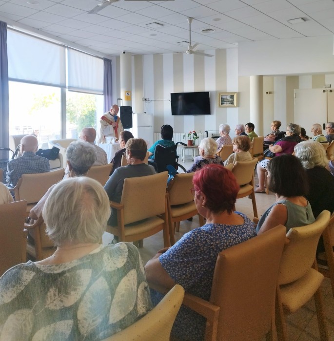 Aquest matí ha tingut lloc la misa mensual amb Mossèn Joan. Gràcies per acudir sempre, per a la majoria dels nostres residents aquest dia és molt esperat durant el mes, ja que hi tenen molta fe i moltes coses per els que demanar.