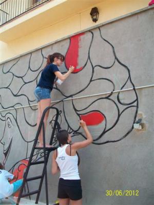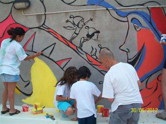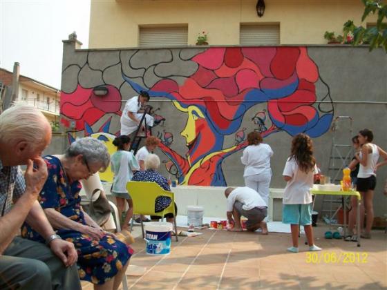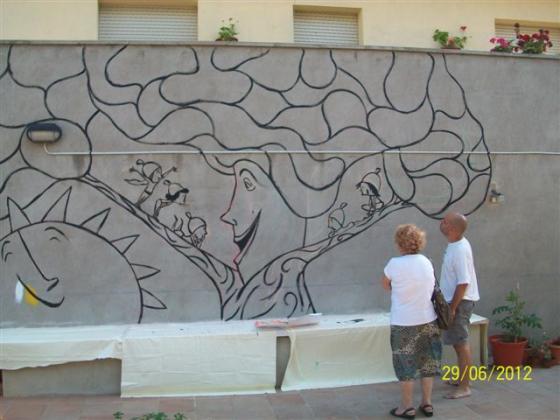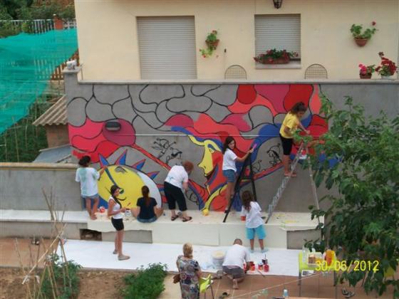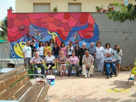 L'Alzina dels Colls és ara una àvia sàvia que explica tot allò que sap, o tot allò que vol, a les glans que ara són els infants del grup d'esplai Xiruques del Roc de la Mel. Amb ells, amb els avis i àvies i amb l'il.lustrador Valentí Gubianas que ha fet el disseny, el dissabte 30 de juny vem pintar un mural al pati de la Residència. Com podeu comprovar va quedar un mural fantàstic. Moltes gràcies al Valentí i als xiruques per la seva col·laboració!!!!!