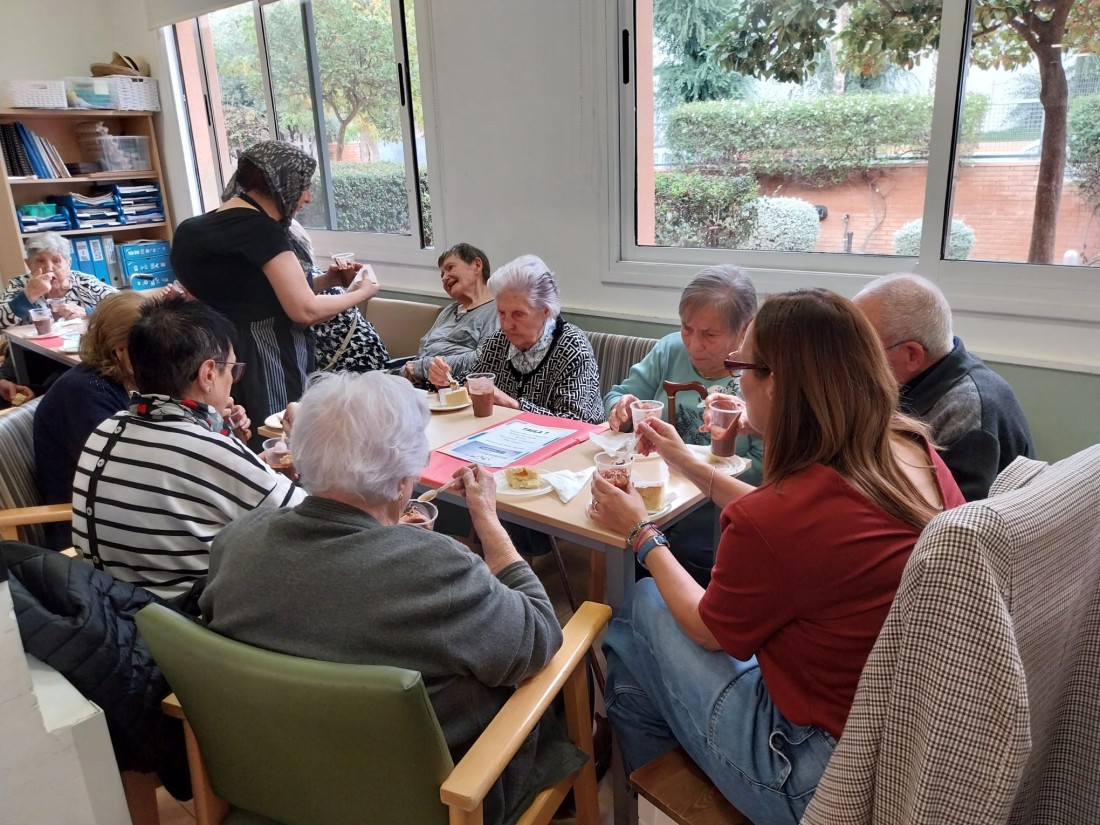 Durant la tarda, persones usuàries, familiars i equip vam gaudir d'un Berenar Solidari: coc amb