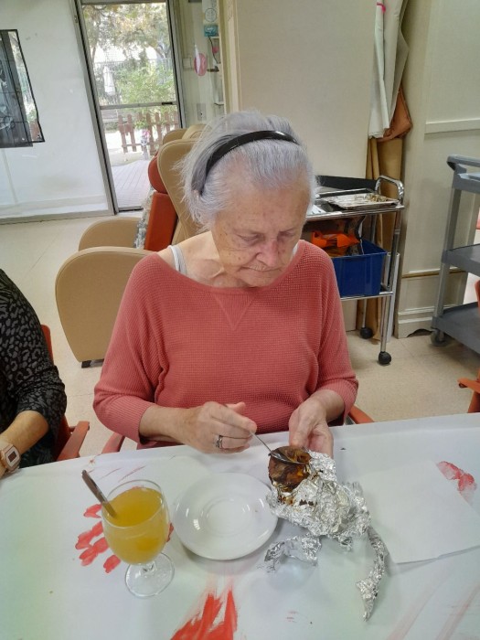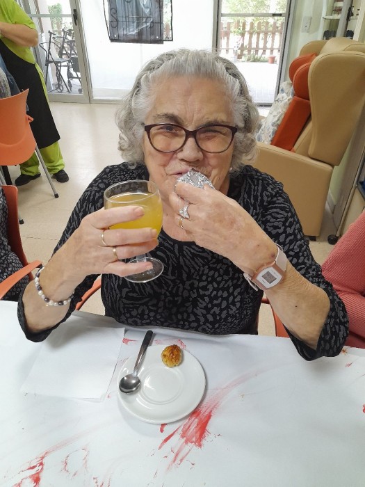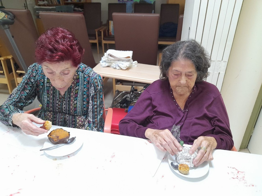 Un día como hoy no podía faltar la visita de nuestras castañeras y una merienda muy tradicional: boniatos y panellets.