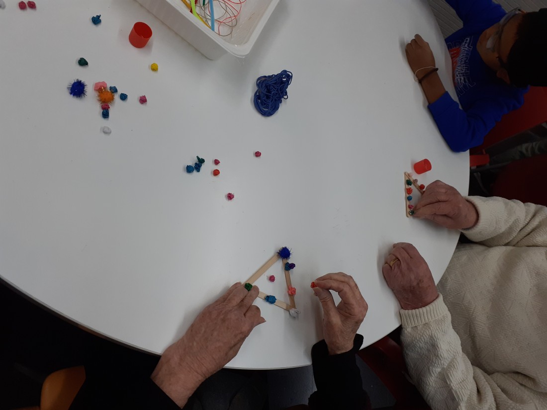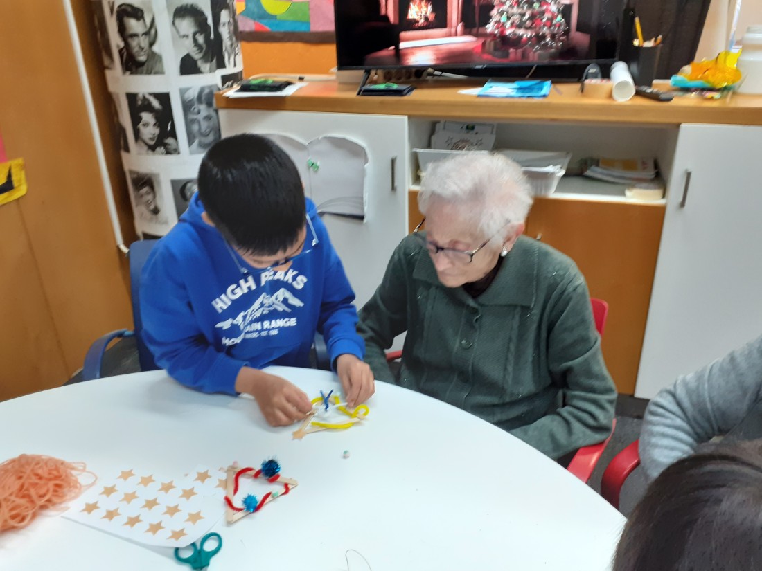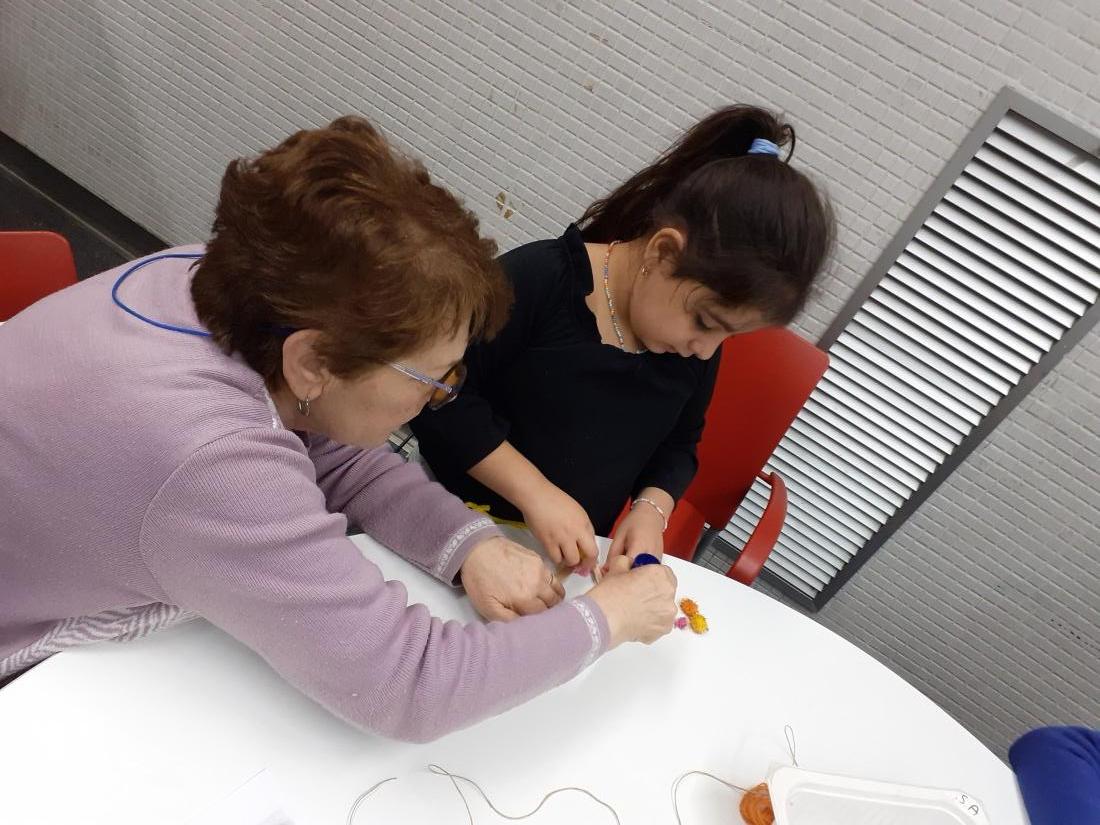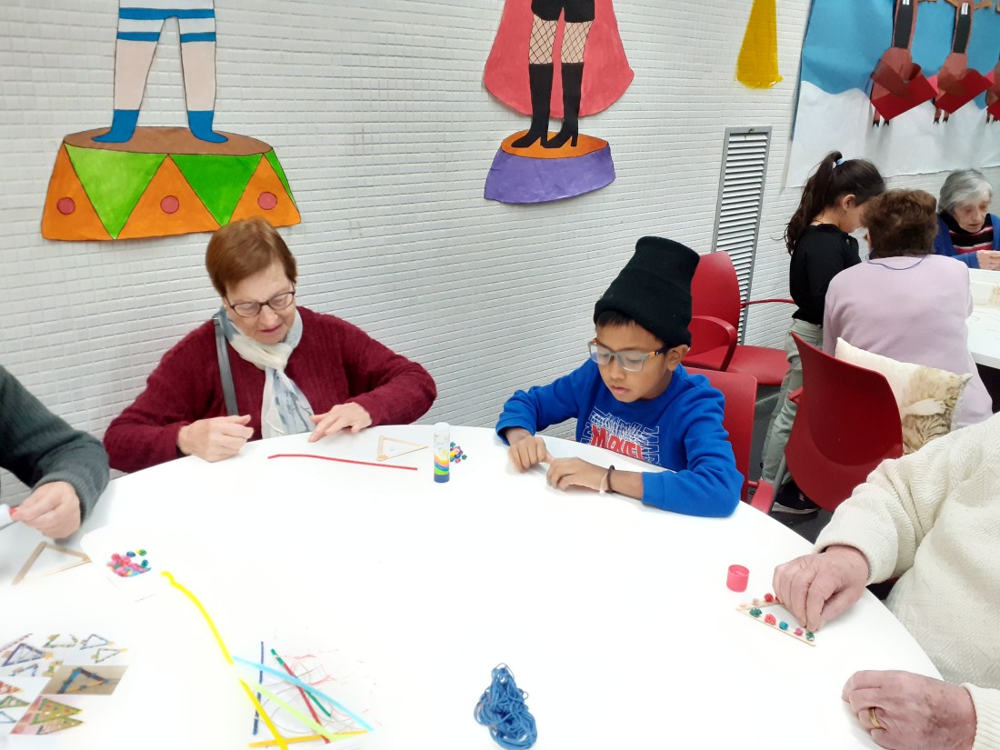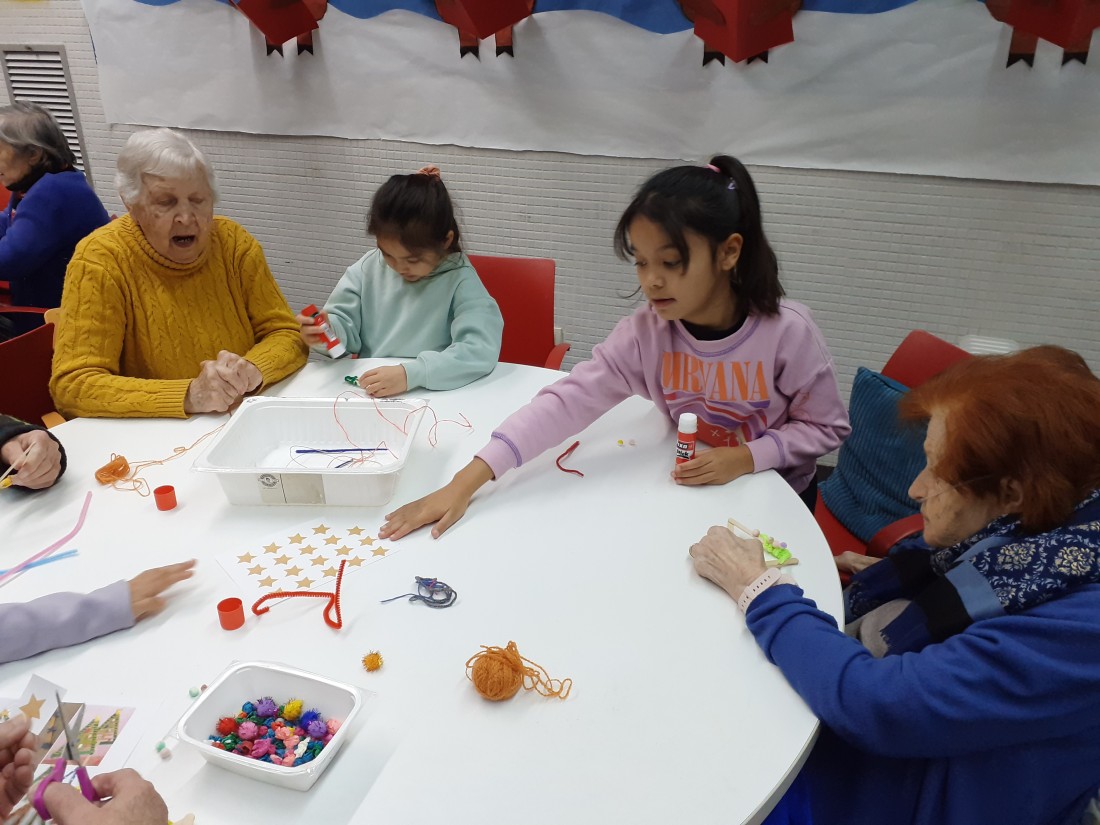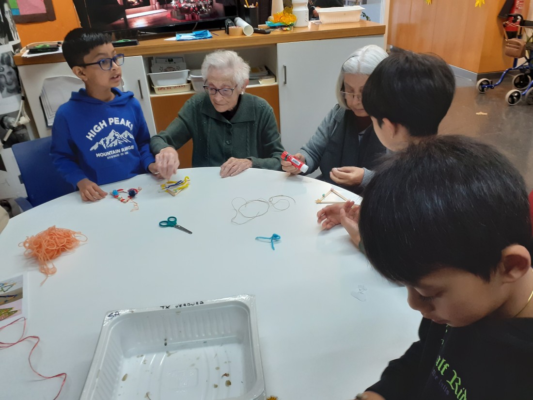 Els nens i nenes de la classe de Les plantes han vingut per compartir una estona amb nosaltres i fer una manualitat que vendrem a la paradeta soldària de La Marató