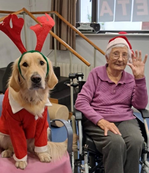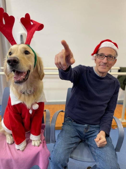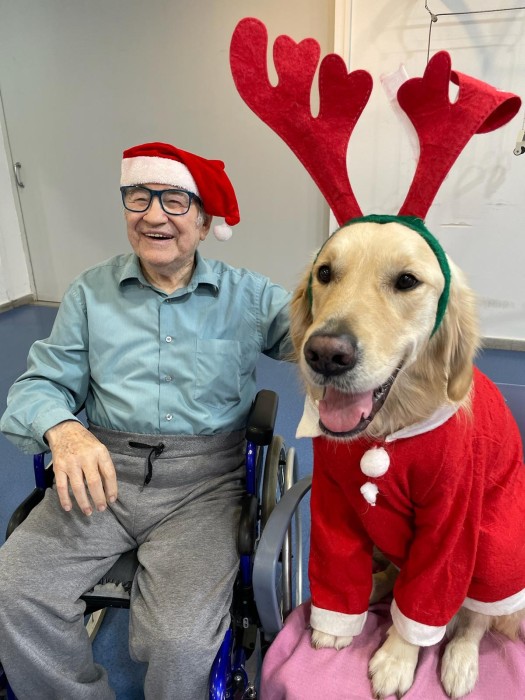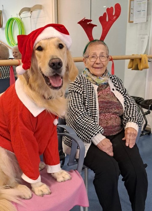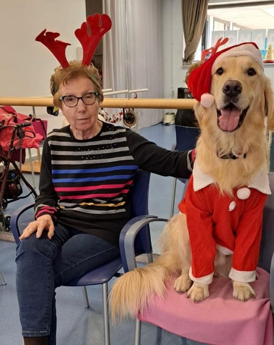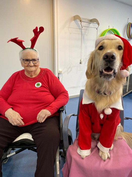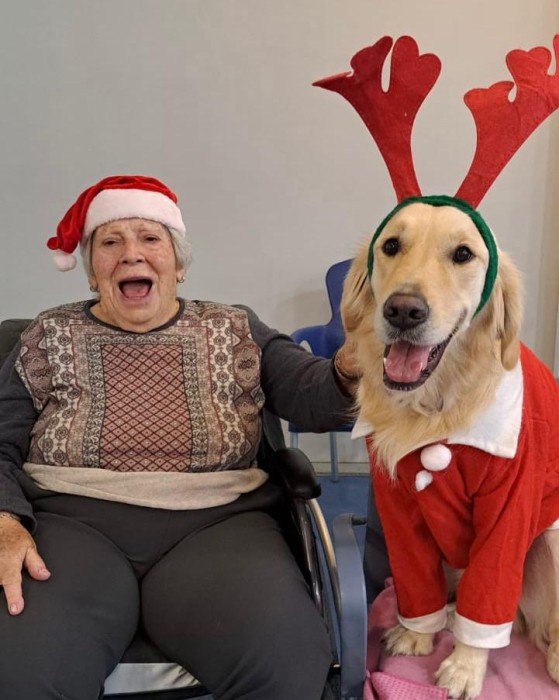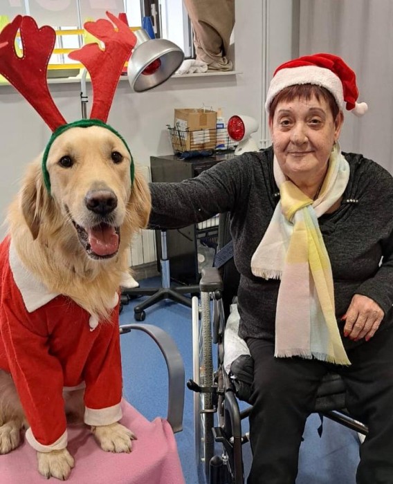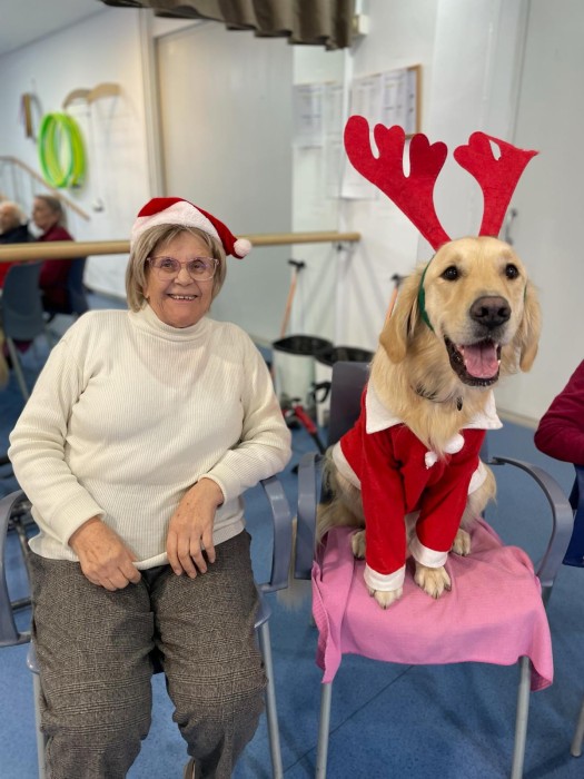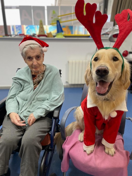 Teràpia assistida amb la Satie! Hem pogut compartir un matí de teràpia amb la Satie on ens hem divertit molt, l'hem fet jugar, hem cantant nadales i ens hem vestit amb complements nadalencs per donar un ambient més màgic. Sempre que ve ens fa passar unes estones ben divertides amb molt d'amor felicitat i alegria!