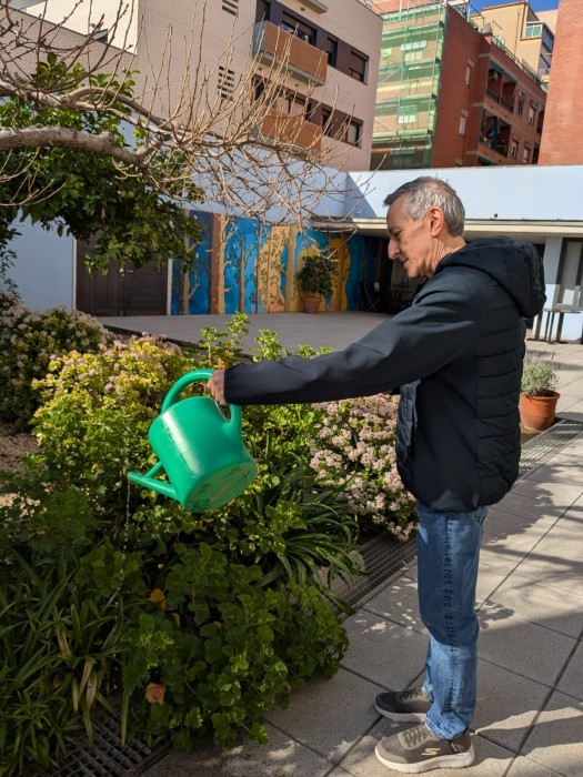 Avui hem volgut aprofitar el bon dia que ha fet per sortir al jardí a que ens toqui una mica el sol. Hem regat les plantes i hem estat una bona estona assentats i observant el bon dia que fa amb molt bona companyia.
