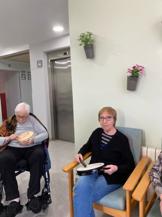 Aquest dimarts hem pogut gaudir d'una sessió de musicoteràpia més lúdica, hem tocat diferents instruments i després hem jugat a jocs musicals i altres més dinàmics amb mocadors de colors i objectes. La música va molt bé per treballar la reminiscència gaudint de cada moment.