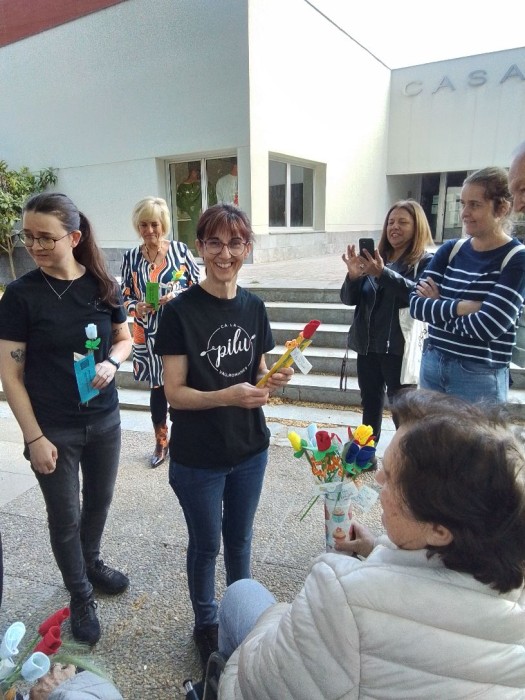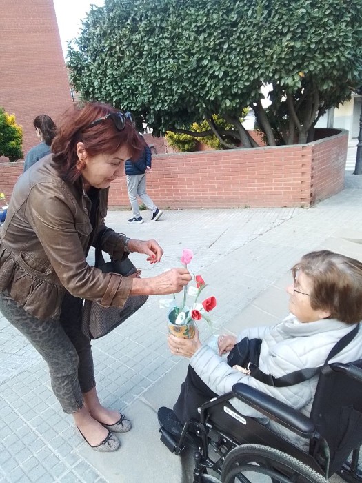 Una rosa una abraçada. Sortim per vallromanes a repartir-les que han fet els nostres usuaris del centre.