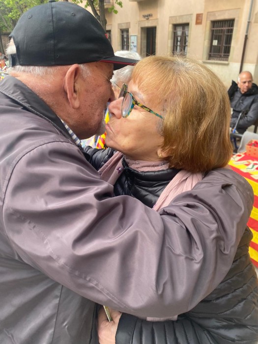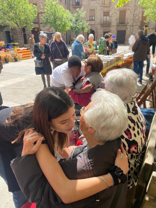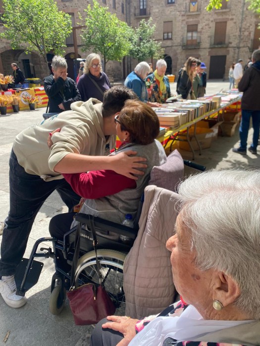 Com cada any a la plaça Gran hem repartit roses a canvi d'abraçades i atenció