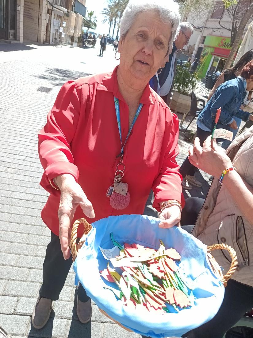Ahir era Sant Jordi i els usuaris del centre van anar a repartir les roses fetes a mà a tota la població.