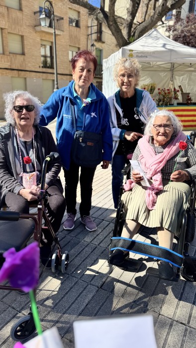 Dimecres vam estar a la plaça de l'Església de Riudoms celebrant la Diada de Sant Jordi, i ho vam fer a través del projecte "Una rosa, una abraçada", que consisteix en repartir roses elaborades per les persones usuàries, per abraçades. Un any més, va ser un dia molt especial i emotiu!
