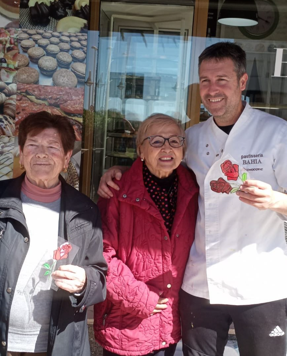 D'una banda les roses que vam preparar els usuaris al centre i que vam repartir entre les entitats importants de l'Ampolla.
