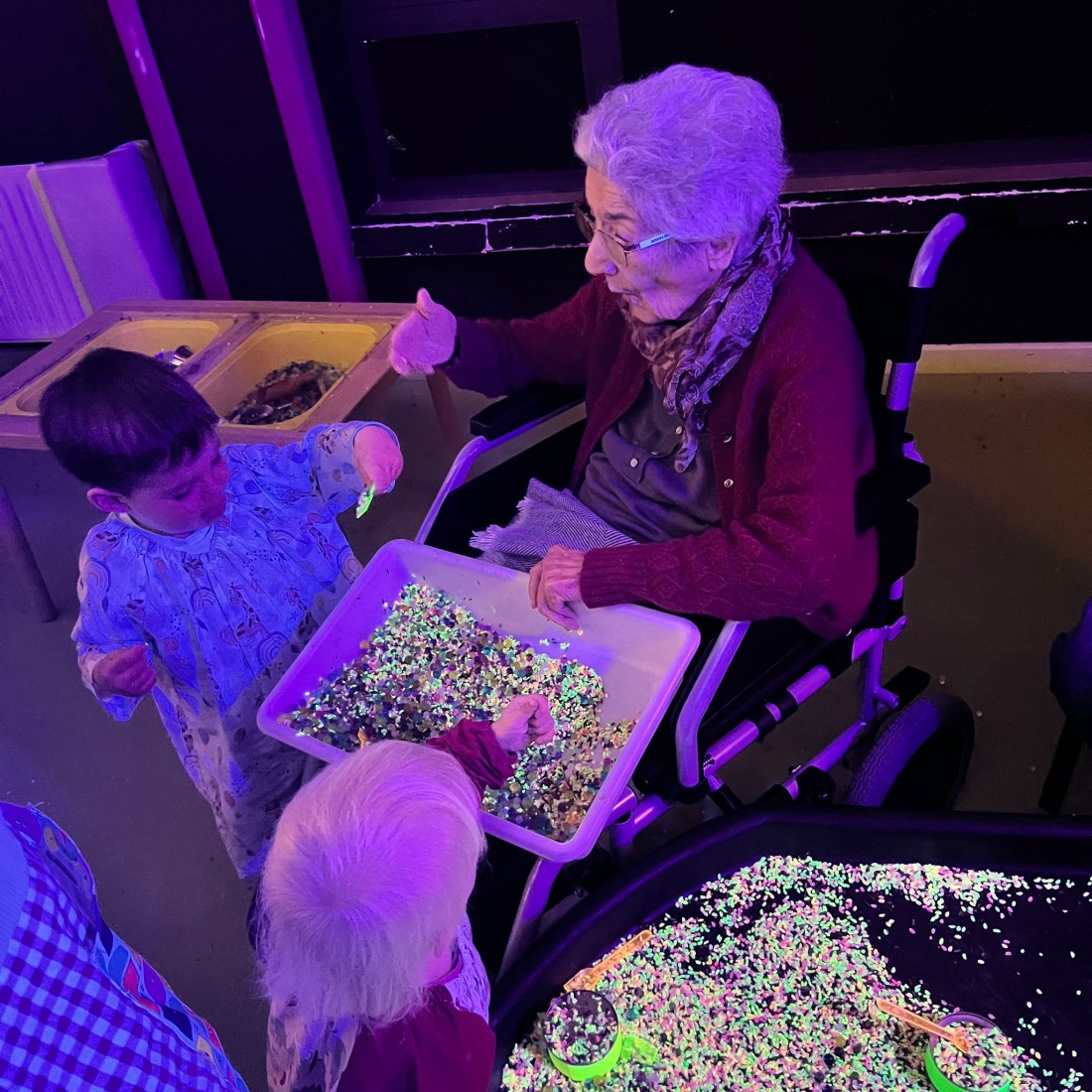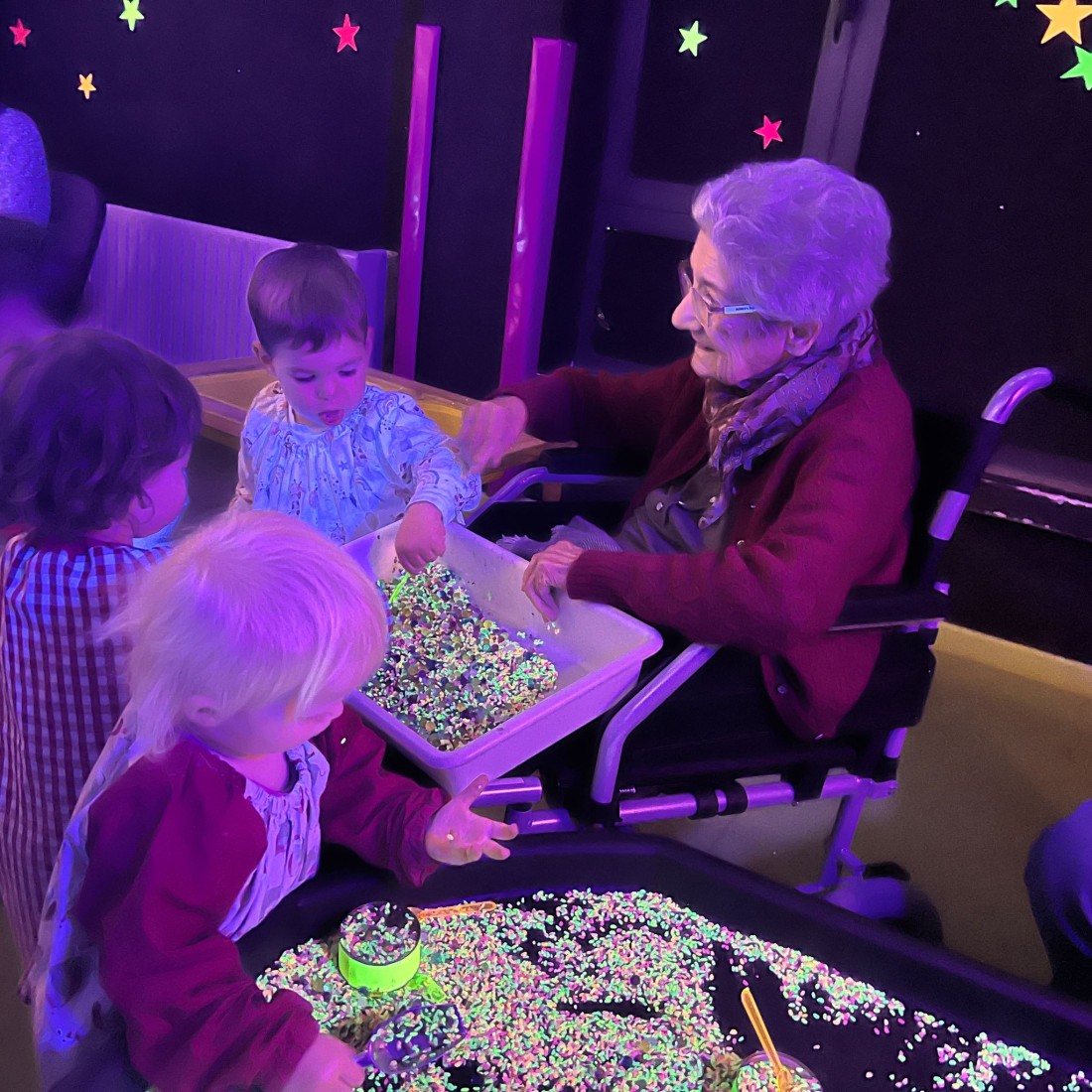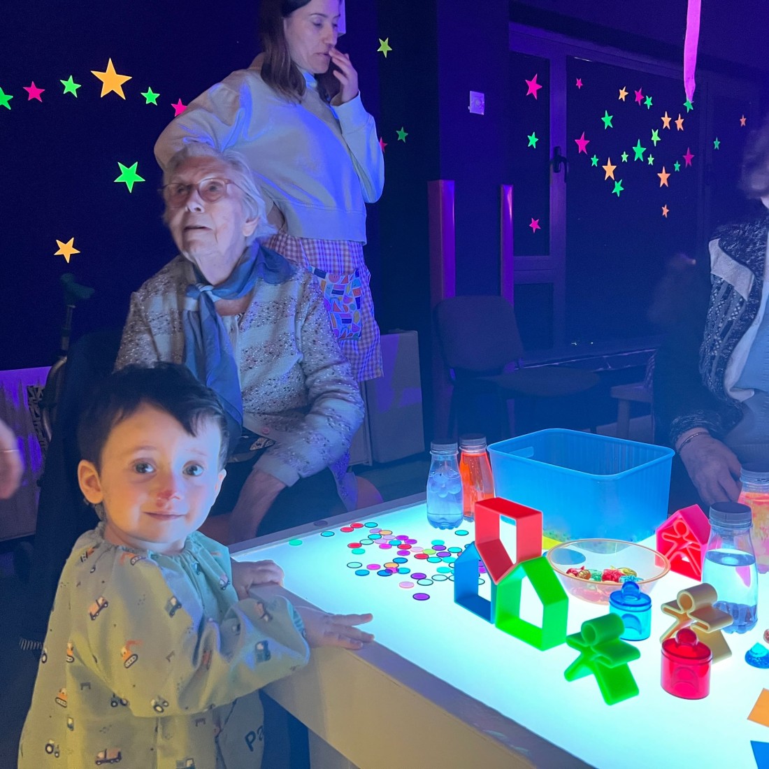 Vam visitar la llar d’infants i vam compartir una estona màgica a la sala Snoezelen amb els més petits.