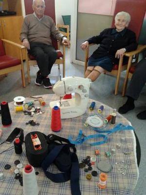 Cosint Records, a través d'objectes, hem fet un viatge al que ha estat la seva feina de tota la vida. Veure els objectes ens han ajudat a recordar la seva utilitat, com i perquè es feia servir les coses, hem parlat de diferents tipus de traus, pegats, butxaques. una de les participants, comentava que havia cosit el vestit de núvia de la seva filla.