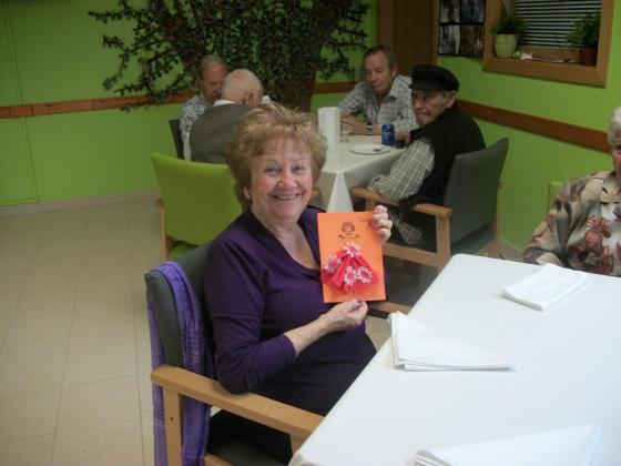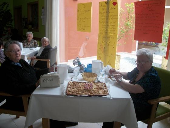 Aquest mes ha sigut l'aniversari de la sra. Teresa, ha fet 83 anys i és una persona amb molta energia i ganes de fer coses noves, li agraden els nous reptes, però el que més li agrada és ballar. Els seus companys li van fer una postal amb una ballarina i una poesia. Per conmemorar la calebració la cuinera, Antònia, li va preparar un pastís de poma, el qual el van trobar boníssim. Moltes felicitats!!!!!!