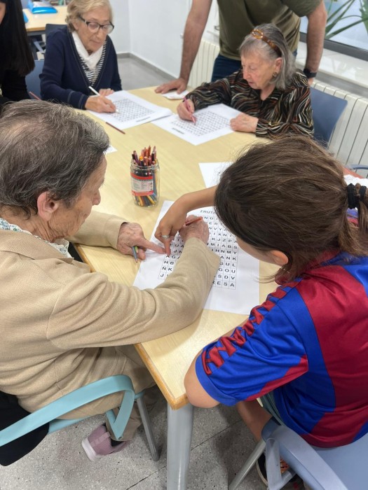 Avui han vingut al centre alumnes de l'escola Sant Medir a fer dinàmiques i activitats que han preparat elles mateixes per poder realitzar amb noslatres. Hem jugat al domino, sopa de lletres, trivial i gincama. Ha sigut un matí molt divertit ple de somriures, jocs i diversió. Volem donar les gràcies a l'escola i als alumnes per organitzar aquesta trobada.