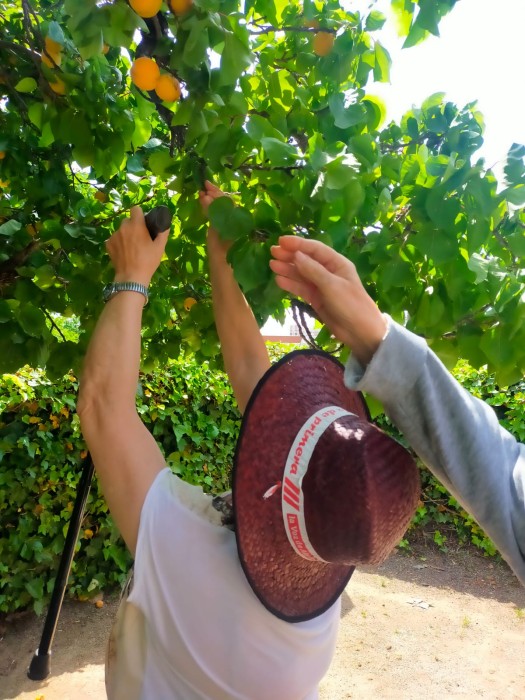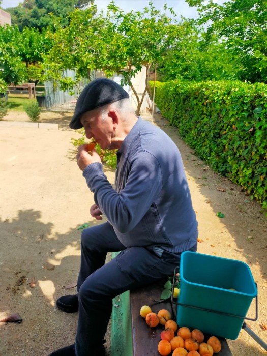 Aquest matí, els usuaris de centre de dia, han sortit al jardí a prendre el sol. Han collit albercocs i els han tastat. Estan boníssims!
