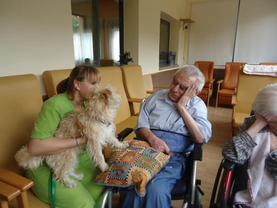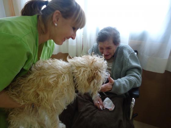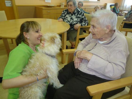 Com sabeu, a Riudoms ens agraden molt els animals i per això aprofitem totes les oportunitats per portar a les nostres mascotes per tal de que els residents també les puguin gaudir. Fa uns dies, va ser el torn de "Pelocho", el gos d'una de les nostres auxiliars (Montse Ruberte), que va fer passar una molt bona estona als residents del centre.