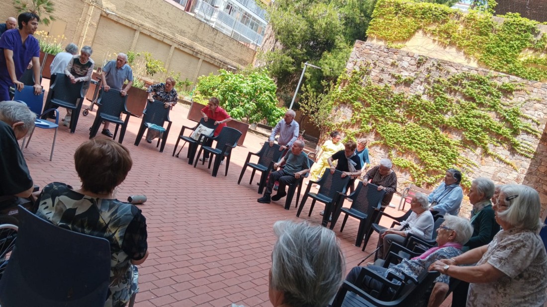 aprofitem el bon temps i sortim a fer el taller de fisioteràpia al pati ????