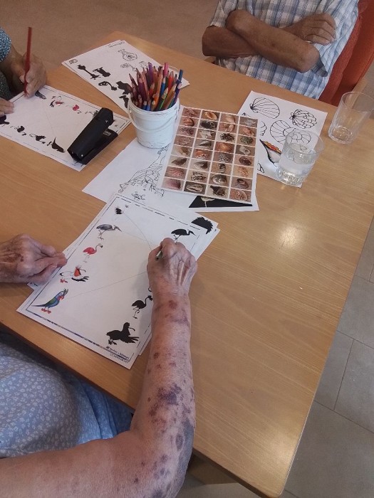 El dia d'avui hem fet fitxes d'estimulació cognitiva i els hi va molt be.
