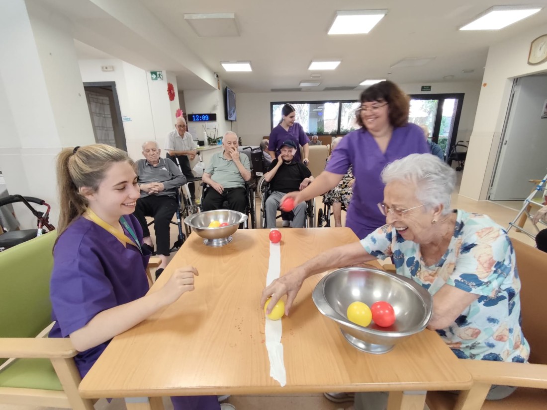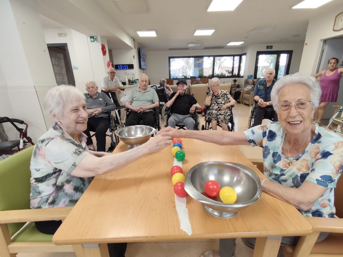 Competència de recollir boles de colors.